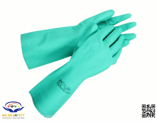 Chiều dài 330 mm – bảo vệ cổ tay và cẳng tay: Thiết kế kéo dài đến khuỷu tay giúp ngăn hóa chất bắn vào da, phù hợp cho môi trường xử lý dung dịch có độ ăn mòn cao.