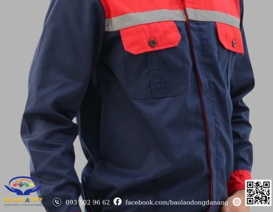 Sản phẩm sử dụng vải kaki 31 cao cấp, kết hợp phối màu tím than – đỏ nổi bật, giúp người lao động vừa an toàn, thoải mái khi làm việc, vừa mang lại hình ảnh chuyên nghiệp – đồng bộ cho doanh nghiệp.